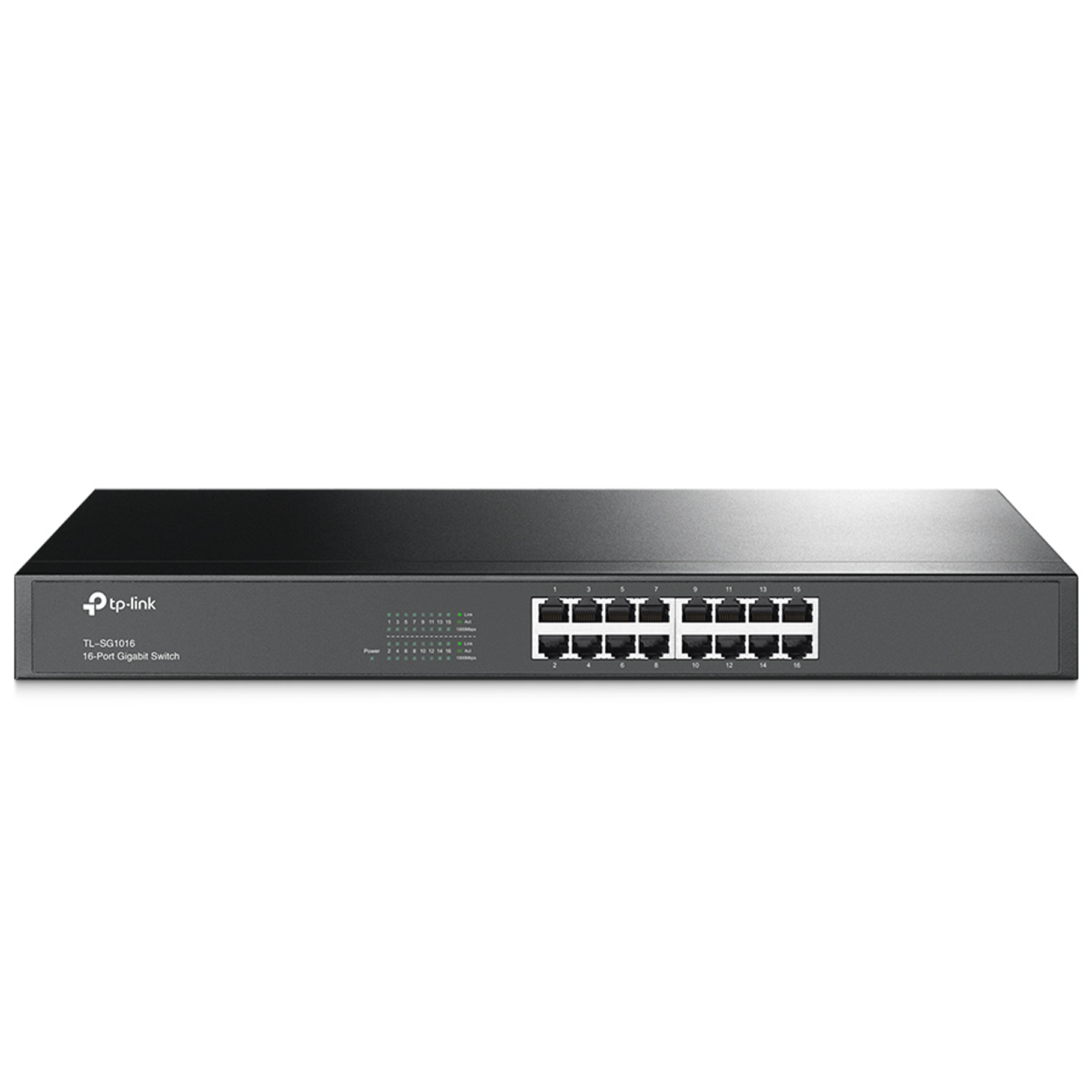 Tplink 16-port Gigabit Switch, 16 10/100/1000M RJ45 ports, 1U 19-inch rack-mountable steel case